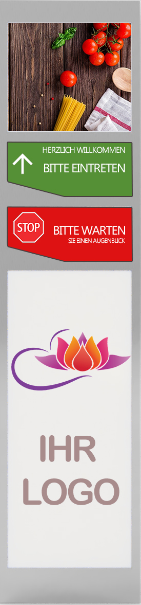 - Aufdruck oder HD Display informiert Personen per Film bzw. Animation über die Verhaltensregeln in Ihrem Geschäft oder Räumen